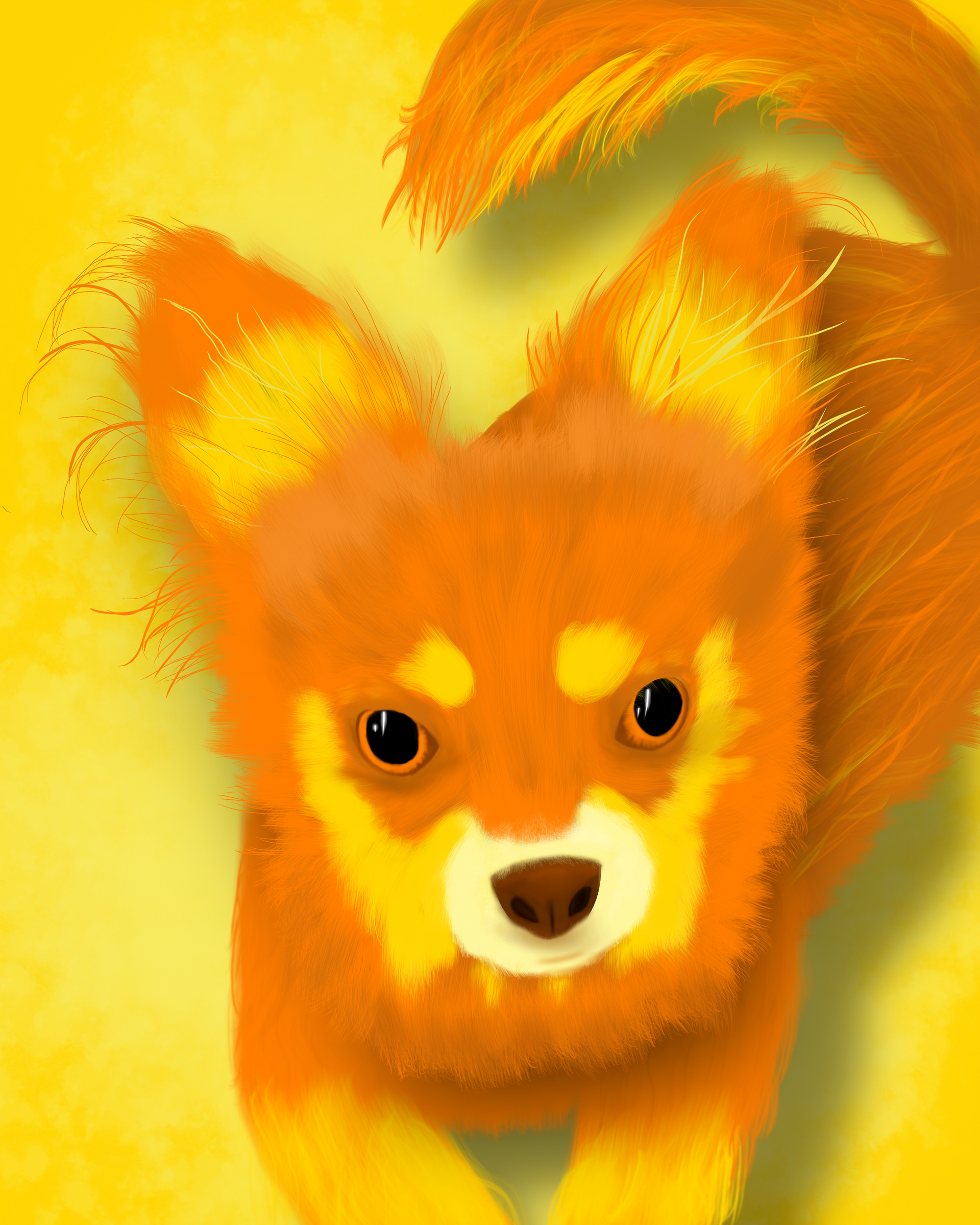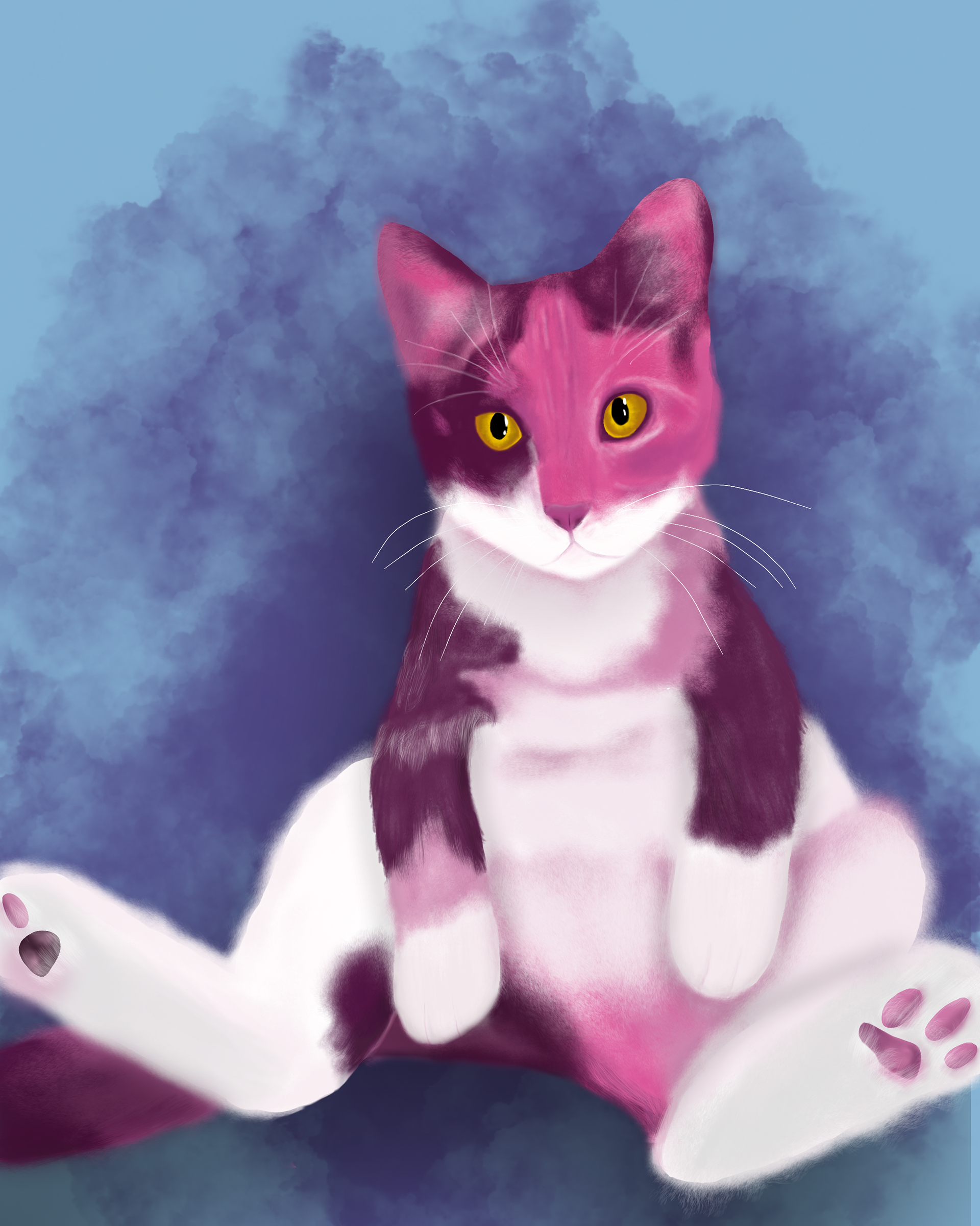 To make it challenging, I decided to paint the portraits on the iPad app, Procreate. This program is new to me, so I prepared by watching many tutorials and practicing different brushes. I also decided to demonstrate each of my pet's different personalities using unique colors and textures. I was surprised to discover that using colors different from their actual coloring was the most challenging. I used the trial-and-error method to create highlights and shadows and choose colors that complement each other.